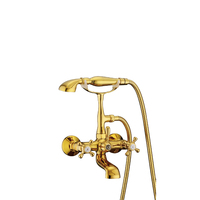 Настенные краны с двумя отверстиями, тройные ручки, классический смеситель для душа, латунные смесители для воды с золотой отделкой