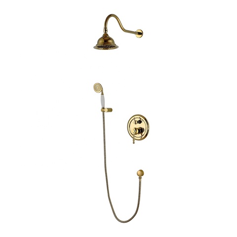 Классический золотой античный настенный латунный душевой набор 2-функциональный скрытый смеситель для душа